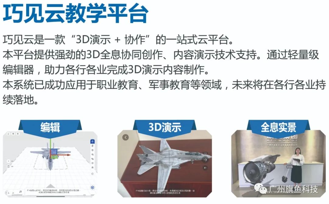 比起往年參會,本次旗魚帶來了全新拳頭產(chǎn)品:巧見云教學平臺、無人作戰(zhàn)模擬仿真教學、MR模擬駕駛訓(xùn)練。