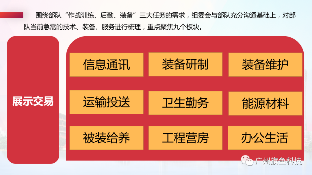 廣州兩用技術(shù)裝備成果交易會(簡稱:兩交會)以市場為主導(dǎo),以部隊需求為牽引,推進兩用技術(shù)發(fā)展和應(yīng)用,促進兩用技術(shù)產(chǎn)業(yè)的發(fā)展,構(gòu)建一個由市場主導(dǎo),以需求牽引的兩用技術(shù)交易服務(wù)平臺。